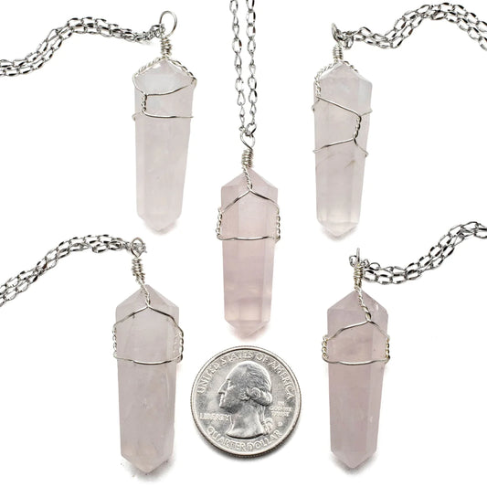 Rose Quartz Point Healing Stone Pendant Necklace